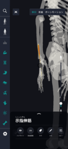 Esta vez, le expliqué cómo estudiar los «músculos del índice extensor» con una aplicación.