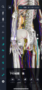 解剖学アプリケーションでは、厳選された解剖学3Dモデルを見ることができます。このモデルでは、表面・断面・神経系など様々な観察方法があります。今回は、解剖学アプリケーションを使ってご説明します。